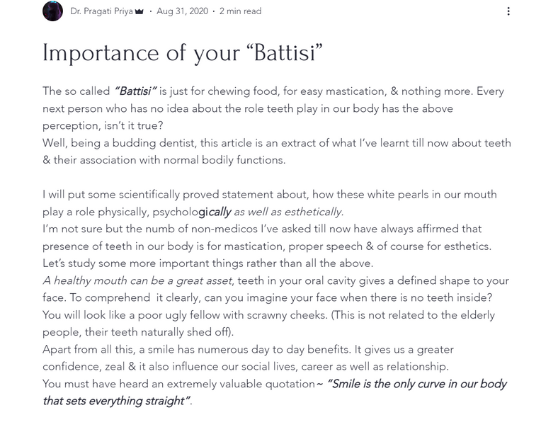 Being a dentist, my core responsibility is to spread awareness about healthy teeth :)